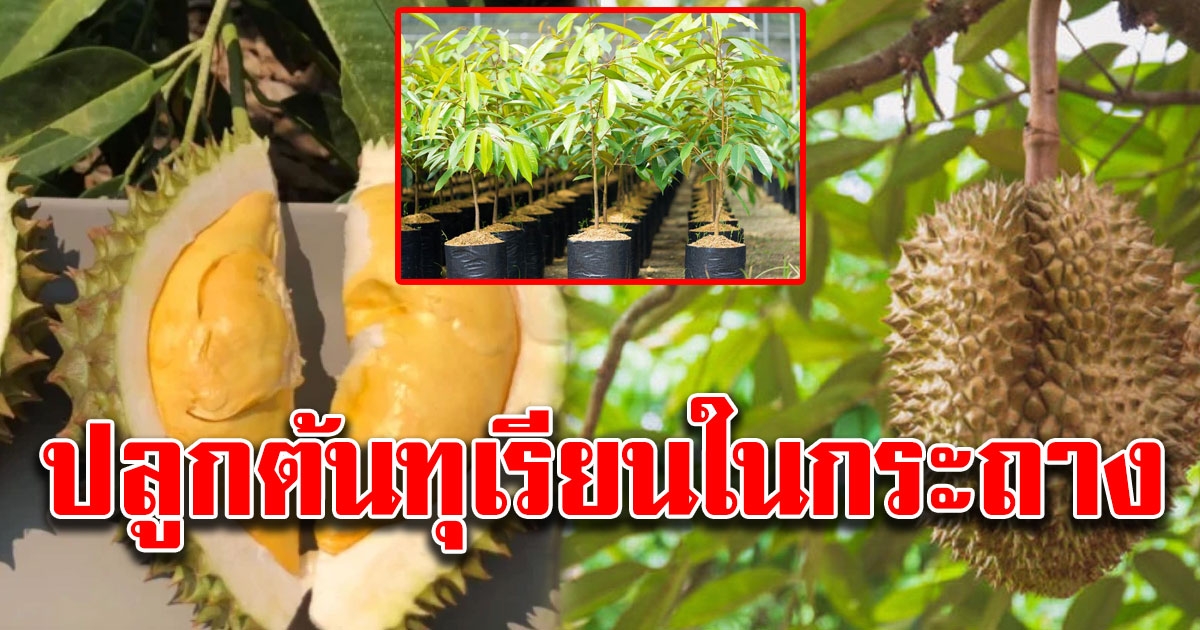 สำหรับคนที่อยากจะลองปลูกทุเรียนในกระถางไว้ที่บ้านสักต้น ก็สามารถทำได้ แถมยังมีข้อดีเยอะเลย เพราะนอกจากจะควบคุมคุณภาพ รสชาติ และการเกิดโรคได้ง่ายกว่าการปลูกลงดินแล้ว ยังใช้พื้นที่น้อยกว่า ให้ผลผลิตเร็ว แถมยังใช้กับการปลูกผลไม้อื่น ๆ ในกระถางได้ด้วย โดยนำกิ่งพันธุ์ทุเรียน จะเป็นกิ่งตอน กิ่งเสียบยอด หรือกิ่งทาบ ที่มีใบแก่เท่านั้น และกิ่งมีอายุอย่างน้อย 1 ปี นำมาตัดถุงชำออก และเอาดินออกประมาณ 1 ใน 4